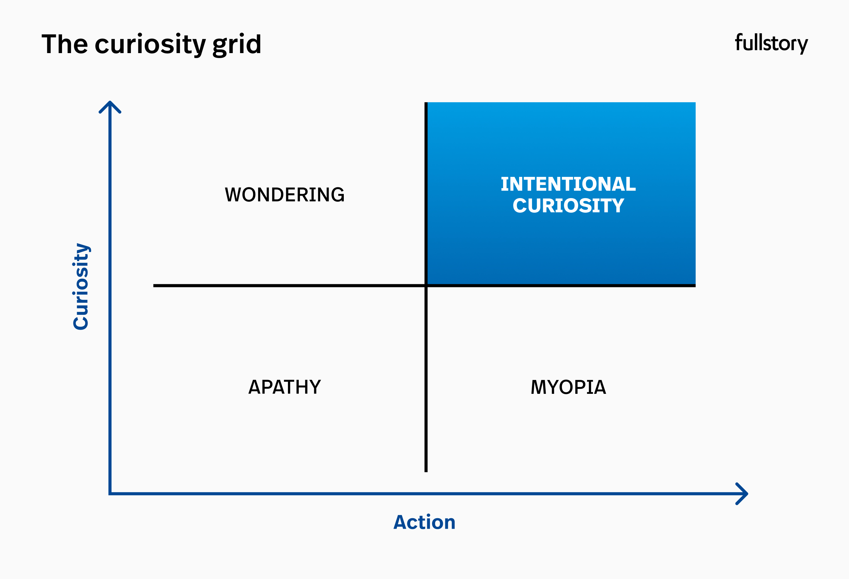 Upper right: When high curiosity blends with a bias toward action, you achieve intentional curiosity. The most successful product teams care deeply about the customer and are motivated to act on the insights they uncover.