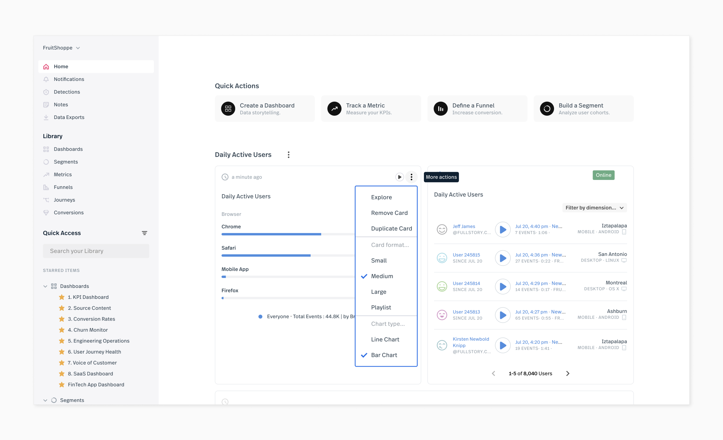 As users become more familiar with the segment builder, they often want to edit, save, and re-use the high level metrics on their other Dashboards, but can’t. It also narrowed focus onto viewing sessions only by segment, obscuring other methods like metrics and funnels that connect qualitative session data to quantitative data.