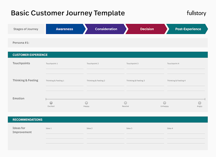 Every business will look through the lens of its customer personas uniquely. Walking through each of the journey map stages with your team will help you identify any points of friction within the customer experience.