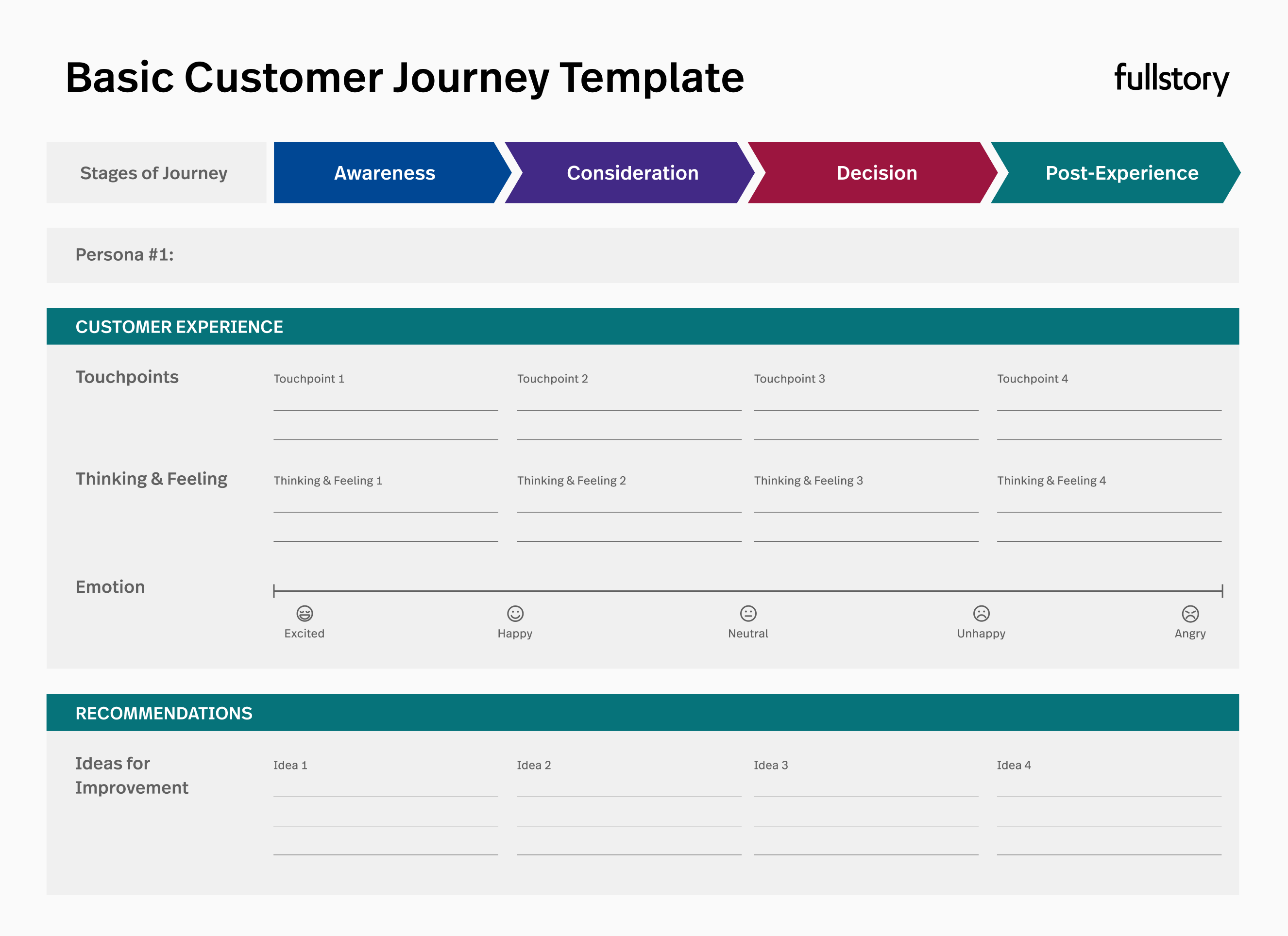 Every business will look through the lens of its customer personas uniquely. Walking through each of the journey map stages with your team will help you identify any points of friction within the customer experience.