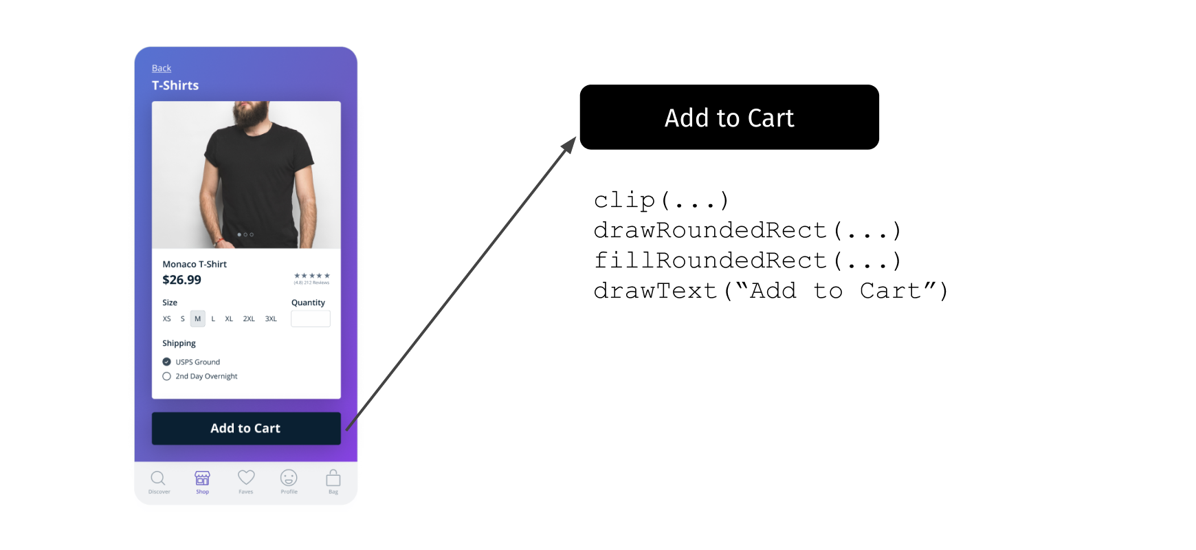 Every on-screen view in a mobile app is composed of a number of lower-level drawing commands: shapes, paths, bitmaps, text, and a variety of others. Here’s an example of how one kind of view might break down: