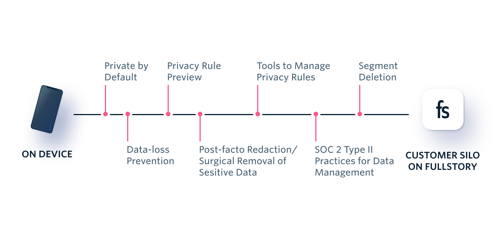 In terms of data collection, we operate with a Private by Default approach. This means that FullStory masks from collection—by default—all text and images that are displayed on the user’s screen.