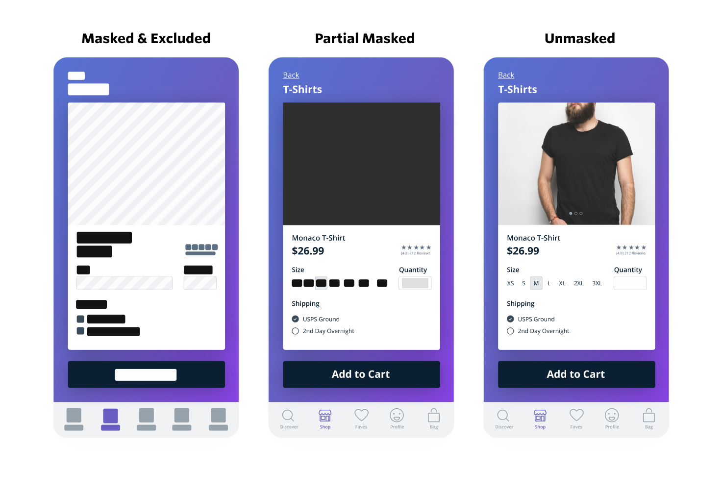 Practically speaking, we are creating a wireframe of the app. This allows our customers to see their end user’s interactions, but no on-screen data is collected or sent to FullStory unless it has been explicitly unmasked.