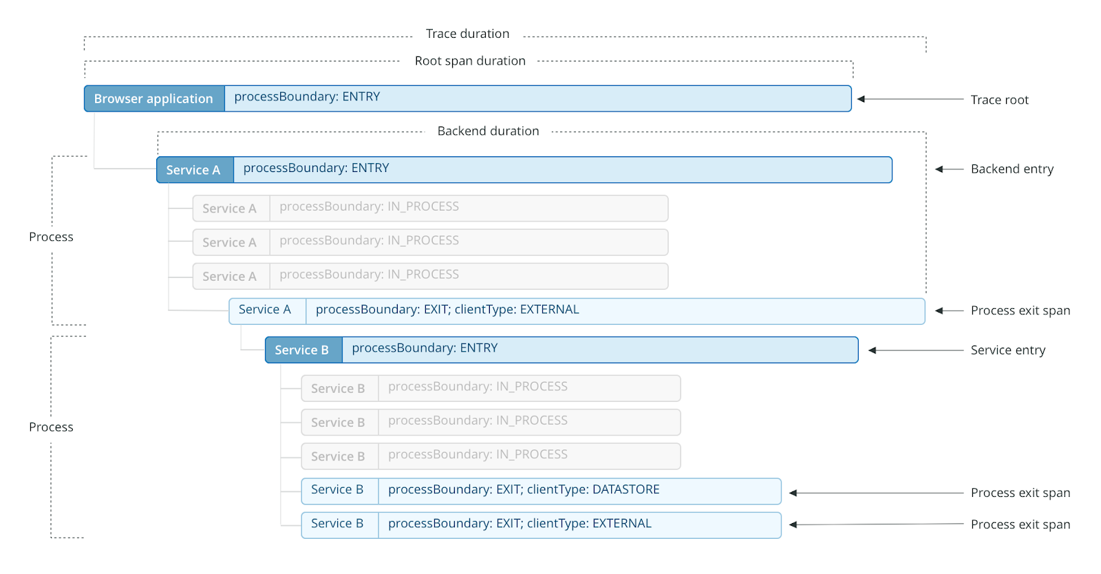 Trace data can point to things that are going wrong within your users’ digital experiences. Long spans corresponding to a particular service call might translate into a sluggish app experience, for example. Spans that contain errors could mean a user experience is completely broken. However, it’s impossible to really gauge the severity of user impact by looking at trace data alone.