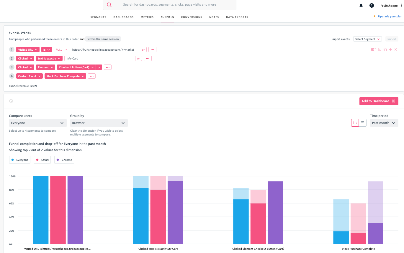 The great part about the FullStory Funnels tool is that you can also create and analyze funnels that are far more complex.